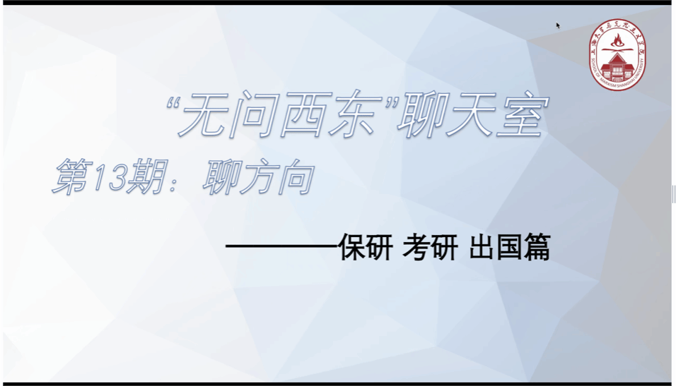 功不唐捐,玉汝于成。每一段为自己的未来努力向上的日子都值得被纪念和称赞,考研的时光也是艰难的岁月,本期聊天室为当前准备考研、保研、出国留学的同学们提供了有效的方法,优秀的前辈学长学姐们为同学们在升学路上坚强助力,相信每一位走在自己人生拼搏路上的同学们都能走过艰难,成功上岸,祝福,期待。(供稿:黄意萍) |