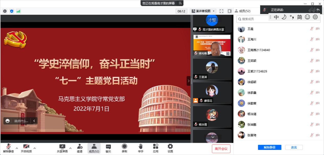 2022年7月1日上午9时,英国上市公司365守常党支部开展“学史淬信仰,奋斗正当时”七一主题党日活动,活动旨在促进支部成员学习守常先生建党思想,继承和弘扬先辈遗志,弘扬伟大建党精神,充分发挥马院学子的使命担当。本次活动由守常党支部书记高才雯主持。