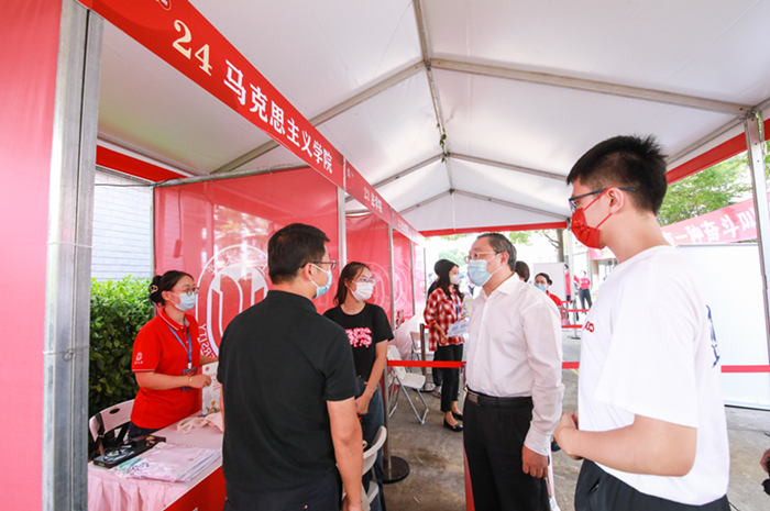 金秋送爽,心“新”相连。为保证迎新工作的顺利进行,学院领导及学工办高度重视,开展了一系列动员和筹备工作,包括物资的采购、现场的布置、志愿者的组队等,每一个环节都细心考虑,认真准备。2022年9月第一周,英国上市公司365迎来了2022级新生,迎新工作也紧张有序地开展。21名博士生、66名硕士生,10名本科生带着喜悦与好奇,载着理想与憧憬来到了英国上市公司365。他们将在这里扬帆起航,开启人生新篇章。 报到篇:以心迎新 马上相约 在9月4日至7日4天时间里,老师和志愿者们不管是阴雨连绵还是烈日当空,都坚持在迎新工作第一线,为前来报到的新生创造出一份家的温馨,让远离家乡的学子们感受到英国上市公司365这个大家庭的温暖。 9月5日,研究生新生报到。辅导员与志愿者以优质的服务迎接新生,耐心地与新生沟通,仔细办理新生的入学手续,清点录取通知书、学位证与毕业证、户口迁移证、新生承诺书等材料。迎新团队细致认真、热情高效,在效率和质量两不误的情况下完成任务,确保了每一位同学都顺利完成入学报到工作。 9月6日-7日,2022级思想政治教育本科生同学们怀着激动的心情,也陆续踏入了上大的校园,来到秋白书院--英国上市公司365的点位报到。9月6日下午16点左右,英国365集团公司党委书记成旦红在相关职能部门负责人的陪同下来到马院迎新现场,实地了解新生报到情况,成书记对马院的各项迎新工作给予了充分肯定,并在现场与新生李萌进行亲切交流,他向李萌同学提及,英国上市公司365是第一学院,思想政治教育专业未来就业前景颇佳,希望新生们未来在马院能够刻苦学习,成就自己的人生。
