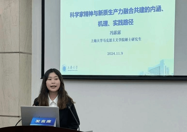 其中,“产教融合 科教融汇 加快新质生产力人才培养”分论坛在上海工程技术大学松江校区举行。论坛邀请了2024年长三角科学道德和学风建设论坛中新质生产力人才培养相关主题论文的获奖代表进行了分享。我院硕士研究生冯露露进行主题为《科学家精神与新质生产力融合共建的内涵、机理、实践路径》的主旨发言。