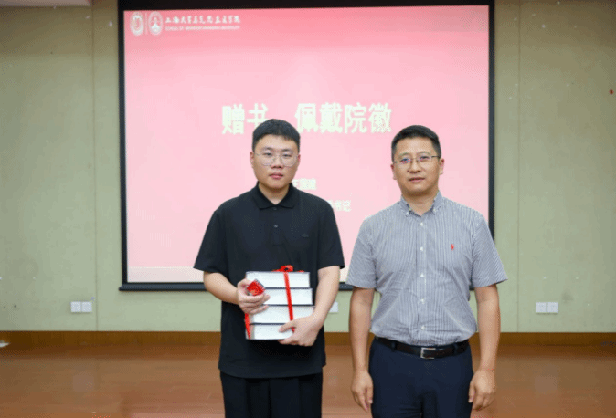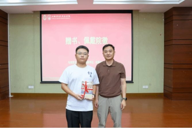 为助力新生筑牢理论基石、涵育学术品格,学院向每位新生赠送书籍。学院领导班子成员为新生代表赠书并佩戴院徽,勉励新生们精读马克思主义经典著作,研习核心原文,深悟其基本原理,坚持做到在深入学习中思考感悟,在深刻领悟中付诸实践,在踏实实践中成长成才。