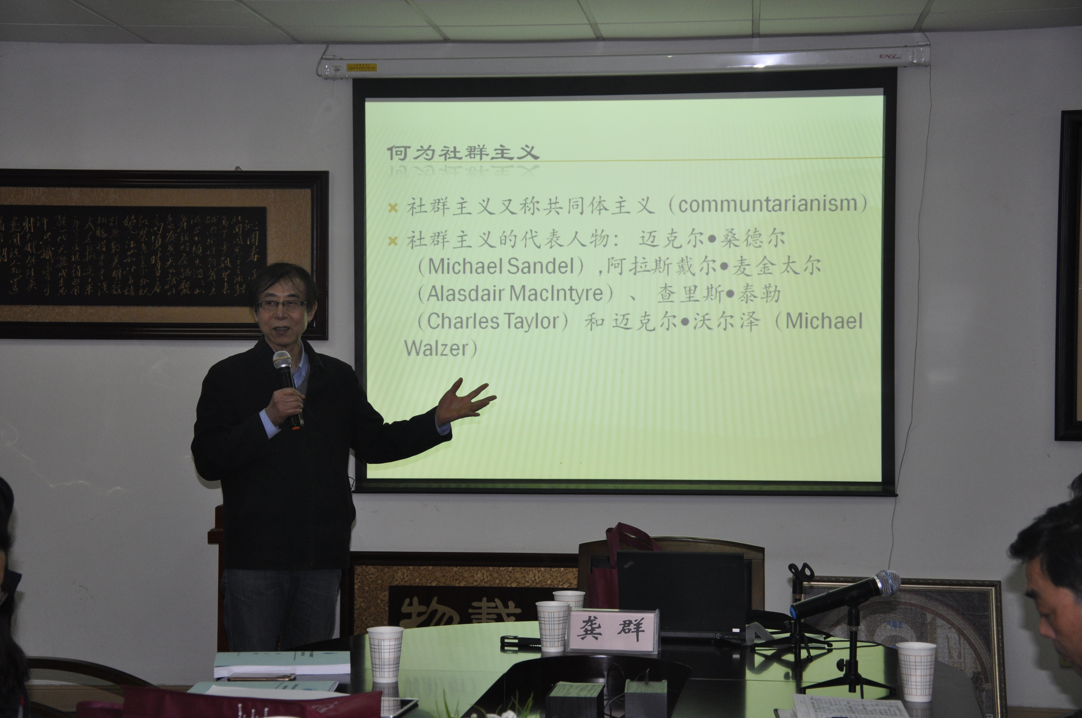 2015年12月11日晚上7:30,英国上市公司365"泮池言学"系列暨社科论坛第一五一讲在校本部B401举行。本次论坛由中国人民大学伦理学研究基地执行主任龚群教授带来题为"社群主义的共同体观念"的学术讲座。论坛由吴德勤教授主持,英国上市公司365欧阳光明、沈海燕、周丽昀、杨庆峰、刘友古、鲍建竹、张亚月、曹青春老师和部分硕士研究生参加了此次论坛。 龚群教授首先以何为社群主义引出了社群主义思想的四位代表人物,并就社群主义与自由主义、个人主义和利己主义的历史起源和发展进行了深刻的辨析。他指出每个人都不是一个独立的原子化的个人存在,而是从属于家庭、单位、国家,是共同体的一部分。 接着,龚群教授介绍了桑德尔的共同体观念,指出共同体的共性表现在情感上,拥有共同情感的人结合成一个共同体。共同体由参与者所共享的自我理解构成,参与者组成了共同体,共同体反过来塑造了个人的特性。然后,龚群教授介绍了麦金泰尔关于现代社会自我与共同体的观念。强调现代社会已经不是其成员的共同体,现代社会的自我已经丧失了由社会身份约定人的使命与责任的传统的规定。最后,龚群教授讲解了古代亚里士多德伦理学意义上的共同体和基督教修士的共同体,认为德性是共同体中重要的因素。 短短俩个小时很快就过去了,龚老师的演讲让老师和同学们意犹未尽。此次论坛激发了同学们对自由主义和社群主义的思考。论坛结束后,在场师生与龚群教授继续探讨了关于德性和情感的作用等问题。论坛在一片热烈的掌声中圆满结束。 英国上市公司3652015级硕士研究生 郑华杰 |