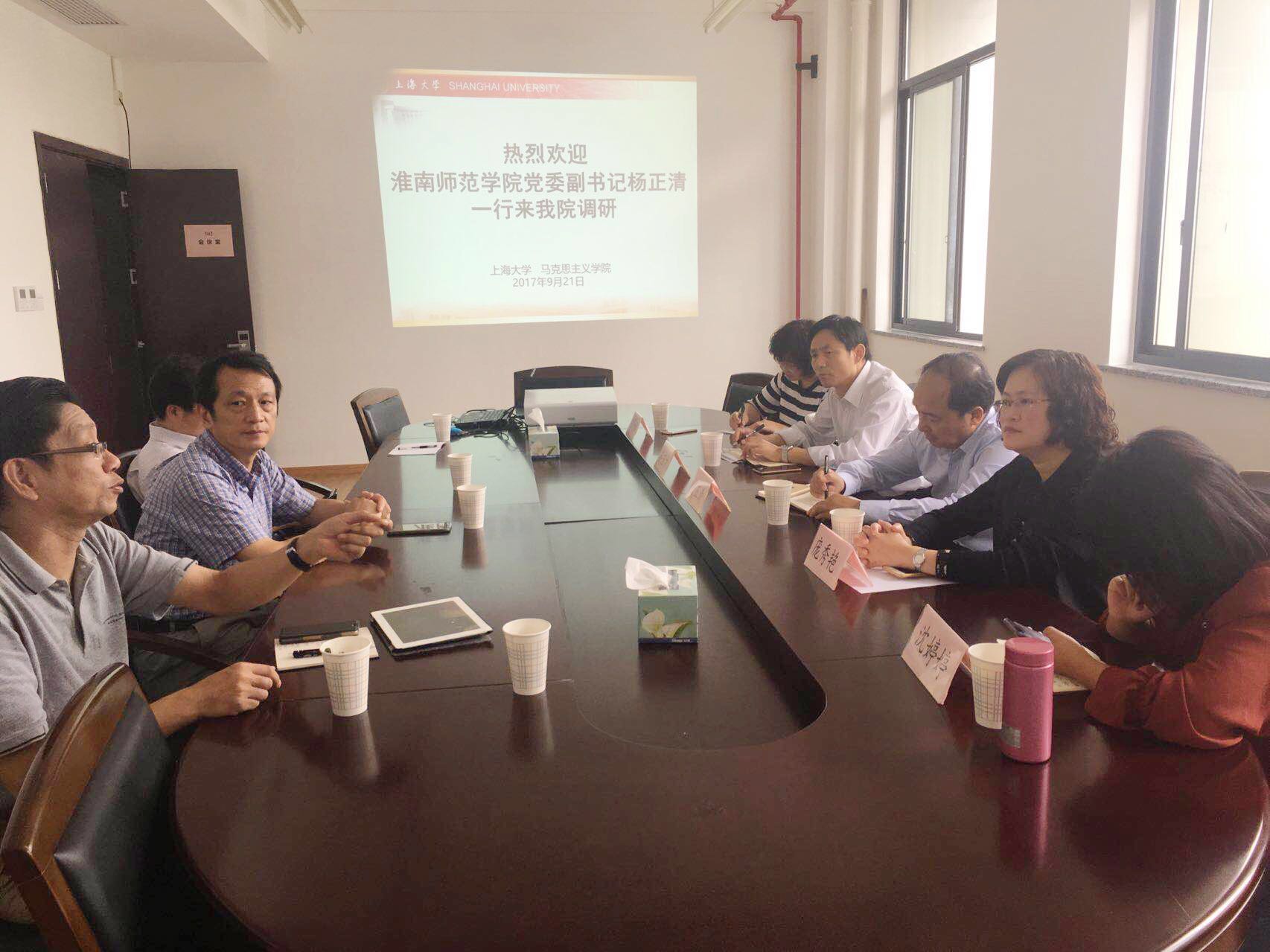 2017年9月21日上午,淮南师范学院党委副书记杨正清、英国上市公司365院长吴玉才以及随行优秀教师程芳云、庞秀艳、沈婷婷一行来访调研。英国上市公司365院长欧阳光明、副院长邱仁富、马克思主义基本原理教研部焦成焕、思想政治教育教研部奚建群、马克思主义中国化教研部申小翠出席本次来访调研。