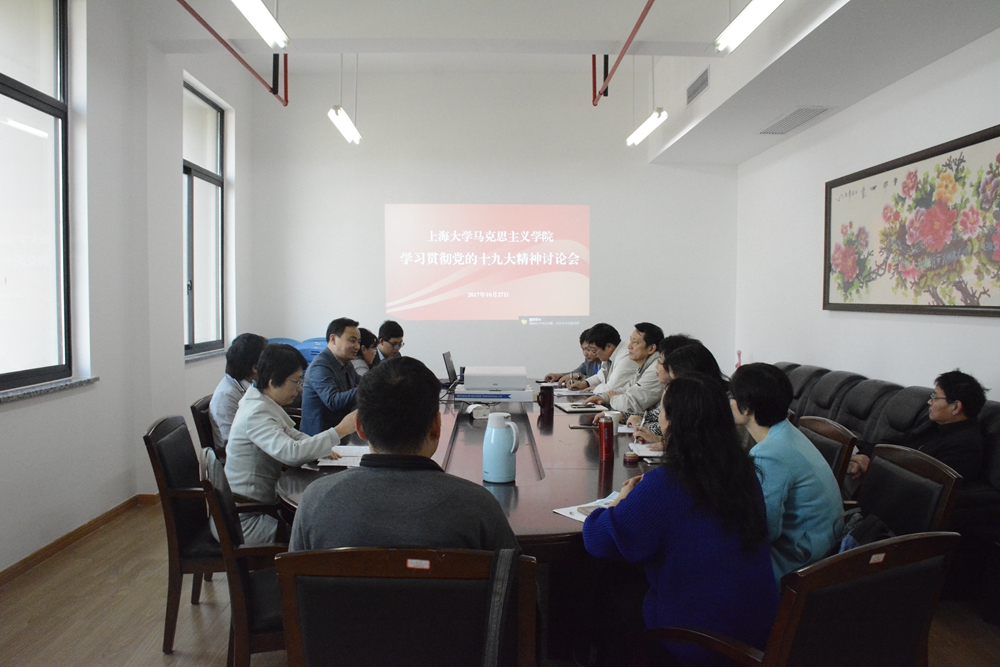 为进一步学习贯彻习近平总书记在中国共产党第十九次全国代表大会上的重要讲话精神,深入研究习近平新时代中国特色社会主义思想,推动我院思政课教学研究。英国上市公司365召集各教研部(室)书记及支部委员、主任、副主任,学术委员会,各工作小组成员在2017年10月27日上午8:00在社科大楼502召开学习讨论会。
