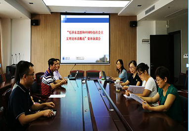 2018年8月31日下午,"毛泽东思想和中国特色社会主义理论体系概论"(以下简称"概论课")集体备课会在学院208会议室举行,"概论课"教研组全体教师参加了备课会,教研部支部书记许静仪主持会议。 会上,教研部主任申小翠首先对新学期的教学安排与要求做了详细说明,她强调要进一步推进"概论课"问题解析式教学改革,不断凝练新教材中重点难点问题和关注学生疑点、社会热点问题,实现教材体系向教学体系的转化。随后,与会教师从教学内容、教学方法以及新媒体手段的运用、课堂管理等方面积极分享了各自备课的思路与授课经验,并对新教材中每章的重点问题以及相关的学术问题进行了深入的探讨。 通过此次备课会,全体成员形成了共识,每学期定期举办集体备课会,交流思想,研讨问题,形成了协同攻坚克难的良好氛围,努力提高"概论课"教学的实效性。(申小翠供稿) |