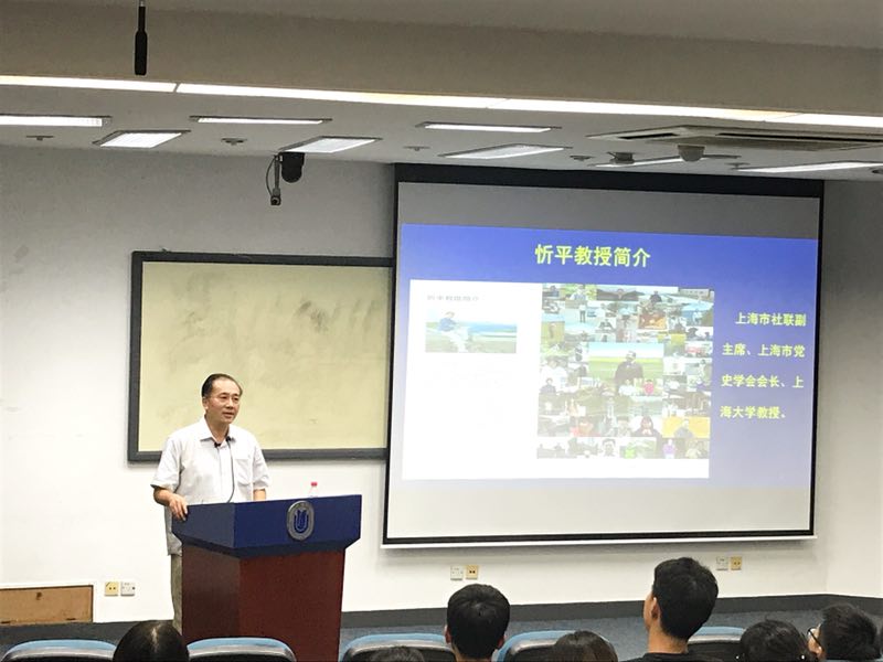 2018年9月5日,《开天辟地》课程在J102教室正式开讲。作为新学期伊始的第一课,英国上市公司365教授、上海市社联副主席、上海市中共党史学会会长忻平老师作为主讲人,带领同学们踏上了中国共产党创建发展的"红色之路"。