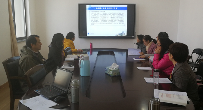 2018年12月13日下午2点,"毛泽东思想和中国特色社会主义理论体系概论"课程组在502室举行集体备课会。这次集体备课会的内容是第十三章《中国特色大国外交》,由邱海燕博士主讲。 邱老师首先从世界多极化的发展历程、经济全球化深入发展、文化多样化持续推进、社会信息化快速发展、科学技术孕育新突破五方面细数当今时代背景;然后从中国五代领导人对时代主题的判断,梳理中国独立自主和平外交政策的演变;再从新型国际关系的提出,阐释以合作共赢为核心的新型国际关系理念。 邱老师重点分析了推动构建人类命运共同体外交理念与中国践行人类命运共同体的生动实践。她指出,作为最大的发展中国家,中国在和平发展过程中对现行国际秩序的立场既反映自身的利益诉求,也代表广大发展中国家的利益诉求。这种诉求的核心可以概括为利益共同体、责任共同体与命运共同体。在大国关系、周边关系、多边与区域合作领域,中国都在践行这一理念。近年来,从《中美气候变化联合声明》到全球气候变化谈判、从亚洲新安全观到《南海各方行为宣言》、从积极支持区域全面经济伙伴关系协定谈判到亚太自贸区的中国倡议都体现了利益共同体、责任共同体与命运共同体理念。尤其是"一带一路"的"五通"(政策沟通、设施联通、贸易畅通、资金融通、民心相通),全面展现了中国致力于建设利益共同体、责任共同体与命运共同体的立场。 对于邱老师的讲解,欧阳光明老师指出,外交政策需要结合时政才能使学生更好的理解。申小翠老师肯定了邱老师备课认真,做了大量准备,教材内容介绍的很全面,建议每一节抓住一个重点问题,结合学生关注的热点问题讲清楚。何英老师认同申老师的观点,并认为学生们不是国际关系专业,讲课不能太专业,要把握好"度"。许静仪、王琍、梁艳、王有英老师也各自发表了的看法。《中国特色大国外交》集体备课会在大家热议中圆满结束。(邱海燕供稿)