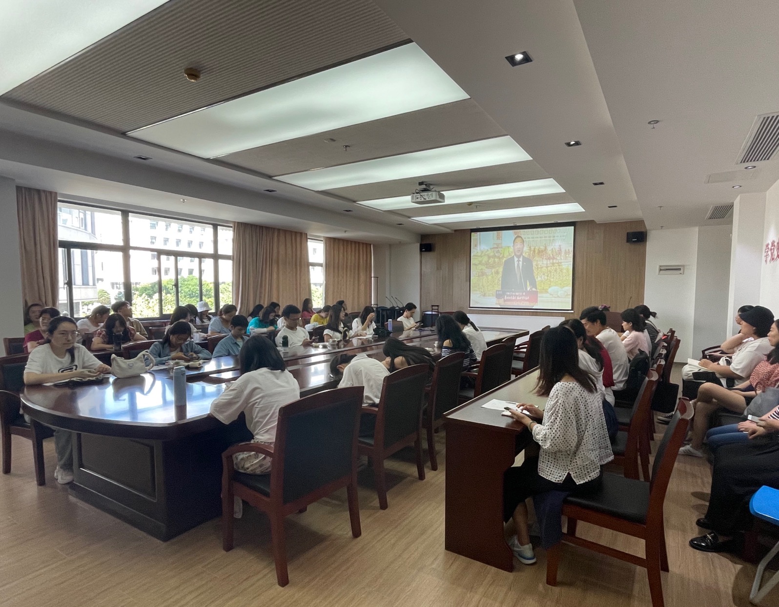 2021年9月17日下午,校党委书记成旦红为2021级新生讲授了题为“ 赓续红色基因,接续百年奋斗”的“新生第一课”,激励广大同学以百倍的精气神投入新的学习生活。全程线上线下同步直播,英国上市公司365全体新生以及院领导班子、教师代表等在学院208会议室收看了直播。