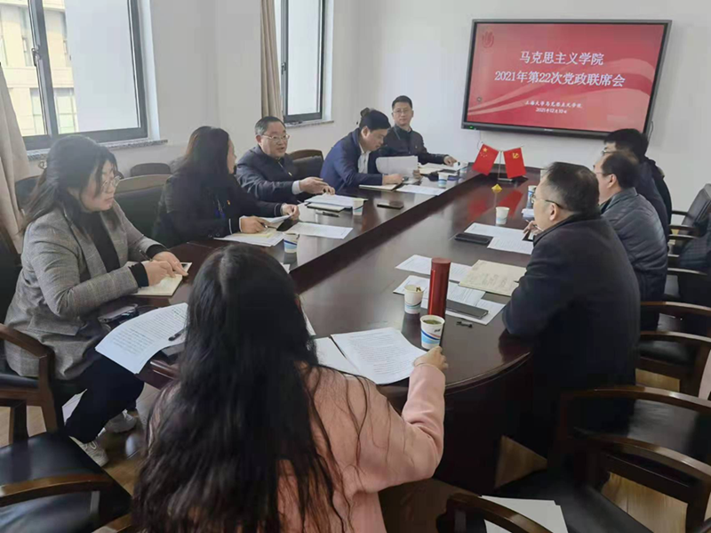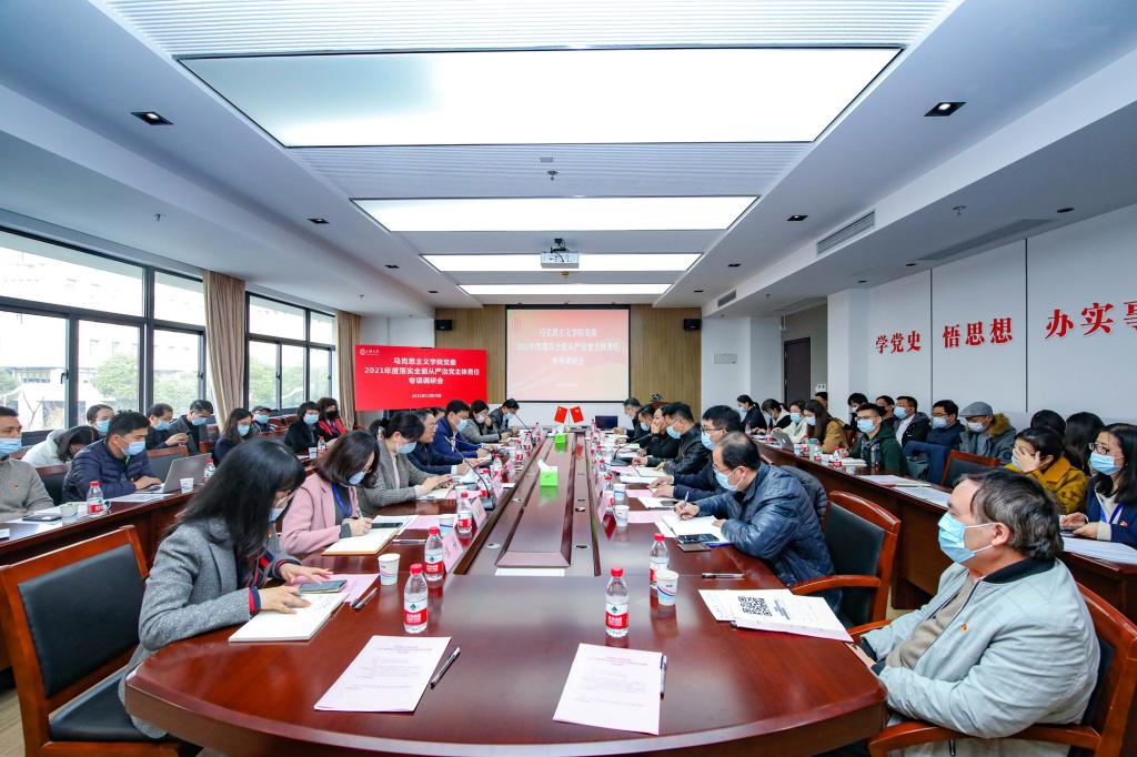 随后,校党委书记成旦红作指导讲话。他充分肯定了学院党委在落实全面从严治党主体责任以及推动学院中心工作,特别是学科建设、师资队伍建设等方面取得的长足进步,对马院在2021年度获得马克思主义理论一级学科博士点授予权表示祝贺。接着,成旦红书记进行了党的十九届六中全会精神的宣讲。他指出,马院教师应高度重视党的十九届六中全会精神的学习领会,结合实际面向校内外师生、群众阐述清楚党的十九届六中全会精神在国家宏观层面和微观层面建设和发展的重要指导意义。他认为,《中共中央关于党的百年奋斗重大成就和历史经验的决议》围绕突出中国特色社会主义新时代这个重点,总结梳理的十三个方面重大成就和确立的“十个坚持”历史经验,以及《决议》针对重大事件、重要会议、重点人物的评价都注重与党中央已有结论相衔接,这对于全党统一思想、统一意志、统一行动,团结带领全国各族人民夺取新时代中国特色社会主义新的伟大胜利具有重要的现实意义和深远的历史意义。他以中美两国面对新冠疫情的不同应对举措以及中国民主革命时期共产党和国民党在对待人民群众的不同态度为例,深刻指明了“两个确立”对我们中国共产党领导中国人民实现中华民族伟大复兴中国梦的“主心骨”和“定盘星”作用。宣讲过后,结合学习党的十九届六中全会精神,成旦红书记对马院提出三点要求,一是马院师生要在读原著、学原文上下功夫,要先学一步、学深一步;二是马院教师要深入学习“七一”重要讲话精神、伟大建党精神、党的十九届六中全会精神等并进一步加强研究和阐释,这是马院教师“当仁不让”的义务和责任;三是切实发挥好马院专家教授的学科和专业优势,要做好全社会的宣传教育工作,把马克思主义的声音传播到祖国的各个角落,把党的路线、方针、政策通过宣传根植于广大师生、广大群众的心里。 全面从严治党主体责任专项调研会议结束后,学院领导班子成员围绕岗位职责分别进行了公开述职。此外,在调研会之前,成旦红书记还列席了英国上市公司365班子党政联席会,指导学院班子如何严格执行党政联席会议议事规则,进一步提升班子的治理能力和水平。
