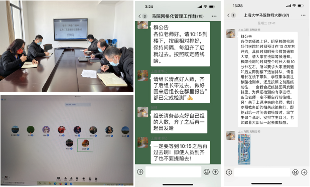 自3月2日晚起,我校根据上海市疫情防控应急处置相关要求,实施闭环管理并组织开展全员核酸检测。在学校党委领导下,英国上市公司365应声而动,沉着应对,快速成立学院封闭式管理工作小组,通过线上+线下两条线进行部署,确保师生员工通知联络、核酸检测、物质保障等各项工作紧密配合、安全有序推进。搭建落实网格化联控管理,及时了解师生动态,解决师生诉求,推动学院师生齐心抗疫工作有条不紊地展开。 【沉着应对 凝心聚力】 人心齐,泰山移。学院党政班子团结带领学院师生,积极贯彻落实上海市和学校有关疫情防控的要求,不折不扣、从严从紧、从细从实做好疫情防控工作,每天通过线上或线下及时召开疫情防控会议,通报情况、分析形势、部署工作,保持信息畅通。学院党委根据对封闭管理的预判,第一时间采购了行军床、洗漱用品、消毒纸巾、紧急药品等物资,积极做好在校师生服务工作,引导学院师生齐心抗疫、合力抗疫。