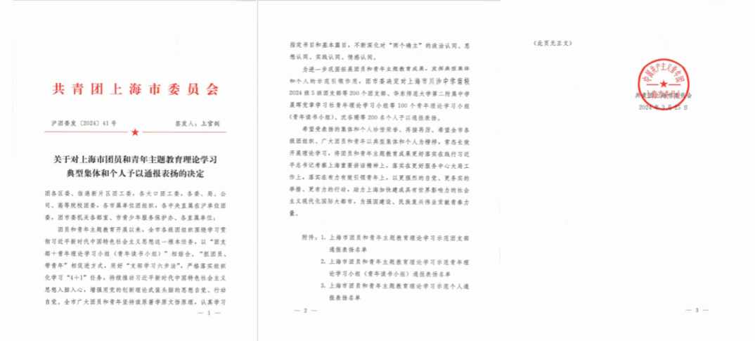 2023年6月26日,习近平总书记在同团中央新一届领导班子集体谈话时提出“要抓好面向广大团员和青年的主题教育,引导团员和青年认真学习领会新时代中国特色社会主义思想,努力掌握这一科学思想的世界观和方法论,善于运用贯穿其中的立场观点方法分析问题,提高对党的基本理论、基本路线、基本方略的领悟力。”2023年9月,团中央印发《关于面向广大团员和青年开展学习贯彻习近平新时代中国特色社会主义思想主题教育的通知》,并召开工作会议,一场面向全国团员和青年的理论大武装拉开大幕。 2023年9月以来,团员和青年主题教育在全团上下广泛深入开展。为进一步巩固深化团员和青年主题教育成果,鼓励和支持理论学习常态化,发挥典型集体和个人的示范引领作用,团市委近日对理论学习中典型团支部、青年理论学习小组(青年读书小组)及先进个人予以通报表扬。我院英国上市公司365思政本科生团支部获“上海市团员和青年主题教育理论学习示范团支部”通报表扬。