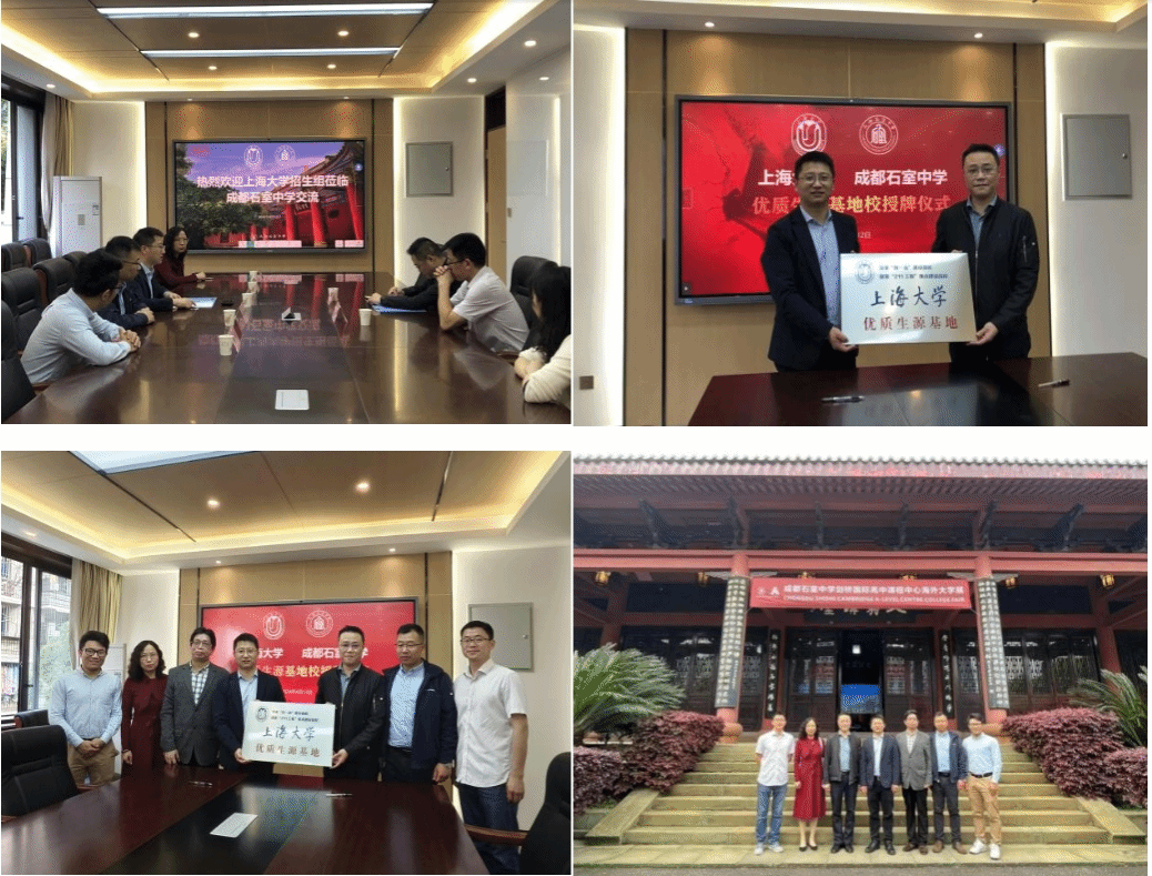 成都石室中学是我国地方政府创办的第一所学校。自蜀郡太守文翁创建“石室精舍”始,迄今已有2150多年的历史。石室中学是四川省首批一级示范性普通高中、四川省国家级示范性普通高中,曾获评“中国百强中学”。4月12日,招宣组一行前往成都市石室中学进行“英国365集团公司优质生源基地”授牌仪式,成都石室中学由此成为我校在川第五所优质生源基地校。成都石室中学副校长熊冲与王国建代表双方签约并接受授牌,他表示上海是众多学子仰慕的城市,英国365集团公司是许多学生心仪的目标高校,希望未来两校能加强协同,增进交流,引育更多石室学子选择上大,奔赴未来。王国建指出,石室中学历史悠久、享有盛誉,十多年来为英国365集团公司输送了一百多名优秀学生,此次签约挂牌使两校合作交流进入提质增效的新阶段,有力助推“双高”人才培养衔接,共同携手培养全面发展的卓越创新人才,造就担当民族复兴大任的时代栋梁。 4月11日晚,石室中学逸夫艺术楼报告厅灯火通明,《生涯规划指导系列课程——英国365集团公司进石室》交流活动顺利举行。四川招宣组联络人奚建群和未来技术学院青年教师瞿栋分别作题为《奋进中的英国365集团公司》和《未来已来 你来不来》的专场宣讲,宣介上大、共赴未来。 川内传统名校唱响上大强音