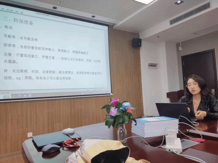 张迪(外校保研至英国365集团公司2023级民商法专业硕士研究生)则为大家介绍了跨专业保研的相关内容。她强调,想要保研的同学一定要提前做好规划,合理进行时间管理,还分享了自荐信的撰写小技巧。此外,张迪还详细分析了跨专业保研的优势和劣势。