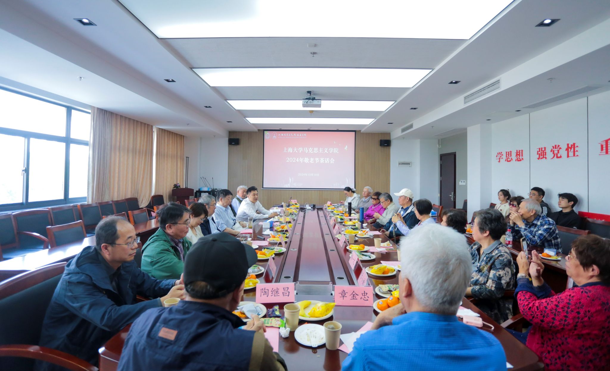 伴随着热烈温馨氛围,与会的老师进行座谈交流。徐鼎亚、贾云晞、吴德勤、黄桂珍、陶继昌等老师针对学院近年来的发展变化、学院老师们对老教师的关心关怀以及老教师群体自身生活等主题进行了分享,其中贾云晞老师有感而发,为此次茶话会赋诗一首: 秋高气爽庆重阳,回到娘家精神爽。 祝福马院冠神州,守常支部红旗扬。