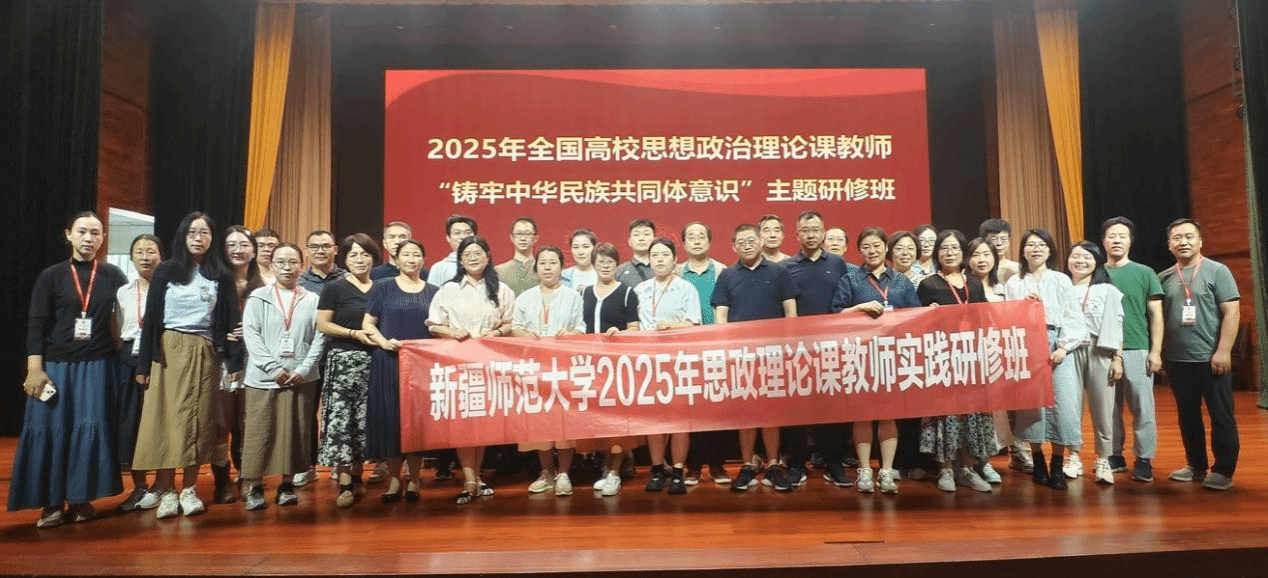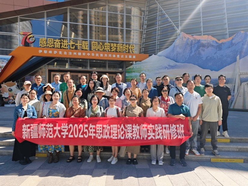 为深入学习贯彻习近平新时代中国特色社会主义思想,认真学习贯彻党的二十大精神和习近平总书记视察新疆重要讲话重要指示精神,进一步落实全国高校思想政治工作会议、全国教育大会和思想政治理论课教师座谈会等会议精神,切实提升思政课教师的政治素养、教学素养、学术素养、道德素养,英国上市公司365组织部分思政课教师于近期参加了由新疆师范大学英国上市公司365举办的“构筑中华民族共有精神家园”专题研修班。本次研修以理论浸润与实地体悟相结合,沿历史文脉与时代前沿穿行,在壮美山河间深植民族团结之根。 溯文明之源,固认同之基 7月10日上午,开班仪式后,新疆师范大学副校长孙秀玲教授作《铸牢中华民族共同体意识 汇聚起中华民族奋斗的团结伟力》专题讲座,系统阐述了中华民族共同体意识的深刻内涵、时代价值与实践路径。下午,老师们前往自治区博物馆进行“手迹西域千年印记”的现场教学,让陈列的文物成为各民族交往交流交融的鲜活见证。通过现场教学,追寻西域千年印记,深刻理解各民族团结共融的历史根基。晚间,培训班在乌鲁木齐国际大巴扎进行文化考察,老师们沉浸式感受多民族聚居区的交流交融,体验各民族共同繁荣发展的生动实践。