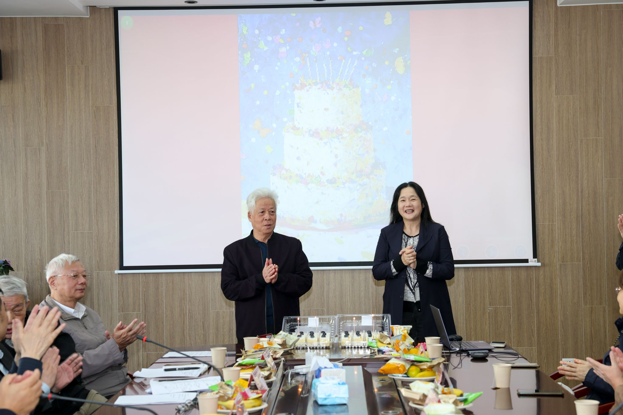 茶话会上,学院为离退休教师中今年“逢五逢十生日”的老师举行了温馨的庆祝仪式,为他们送上生日蛋糕,共同分享快乐时刻。 在热烈温馨的氛围中,与会老教师纷纷发表感言。秦福坤、贾云晞、黄燕清、蒋国庆、赵志静等老师结合学院近年来的发展变化、学院对离退休老教师的关心关怀以及老教师群体自身生活等主题进行了分享。 最后,张高峰作总结发言。他首先对老教授协会、关工委分会、离退休党支部及全体老教师为学院发展做出的卓越贡献致以崇高敬意,表示学院今日的成就离不开老教师们打下的坚实基础。今后,学院将把深入贯彻中央八项规定精神学习教育的成效转化为实际行动,持续深化作风建设,以更精细、更用心的服务做好老教师的关怀保障工作,让每一位老教师都能深切感受到组织的温暖与关心。