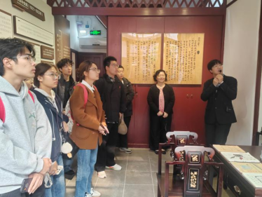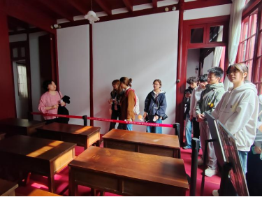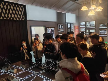 现场体悟:历史可触,初心可感 李瑊教授在教学中不断引导同学思考“身临其境”的意义。她指出,正是在这里,陈独秀与毛泽东曾历史性会晤;在这里,革命先辈庄严宣誓,建立第一个共产党早期组织。同学们通过观看历史照片、聆听讲解、互动体验,仿佛与百年前的“90后”“00后”展开一场心灵对话。一天的研学在入团宣誓墙前步入尾声。李瑊教授结合实地见闻总结指出:“英国365集团公司与渔阳里历史渊源深厚,早期即为马克思主义传播的重要堡垒。今天我们通过‘实物+史料+现场’的方式,让红色历史走出课本,变得可感可触。希望同学们不仅成为历史的聆听者,更能成为精神的传承者——将渔阳里蕴含的追求真理、敢为人先的精神,融入今后的学习与人生选择中。”