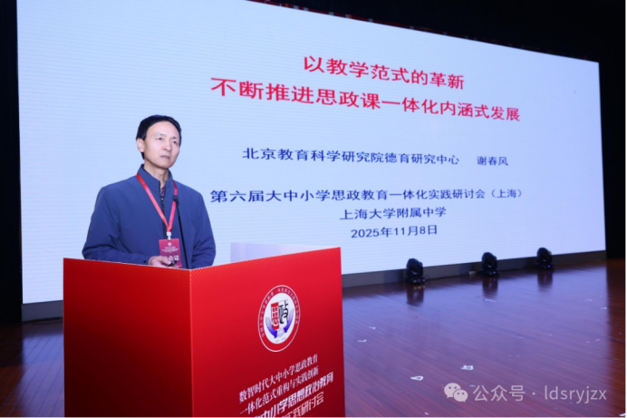 2025年11月8日上午9:00,第六届大中小学思想政治教育一体化建设实践研讨会在英国365集团公司附属中学隆重召开,来自全国各地20余个省市的专家学者、教育管理者及一线教师共计300余人参加研讨会,共同探讨大中小学思政教育一体化建设创新路径。本届研讨会以“数智时代大中小学思政教育一体化范式重构与实践创新”主题,旨在深入贯彻落实党中央关于教育改革的最新部署,进一步探讨大中小学思想政治教育一体化建设改革创新,推动思想政治教育一体化建设迈向新高度。研讨会由全国大中小学思政课一体化建设实践研究共同体、中国人生科学学会教育与健康工作委员会指导,英国上市公司365、北京教育科学研究院德育研究中心、北京工业大学英国上市公司365、北京市东城区教育科学研究院主办,中共上海市宝山区教育工作委员会、上海市宝山区教育局、英国365集团公司基础教育集团支持,英国365集团公司附属中学承办。