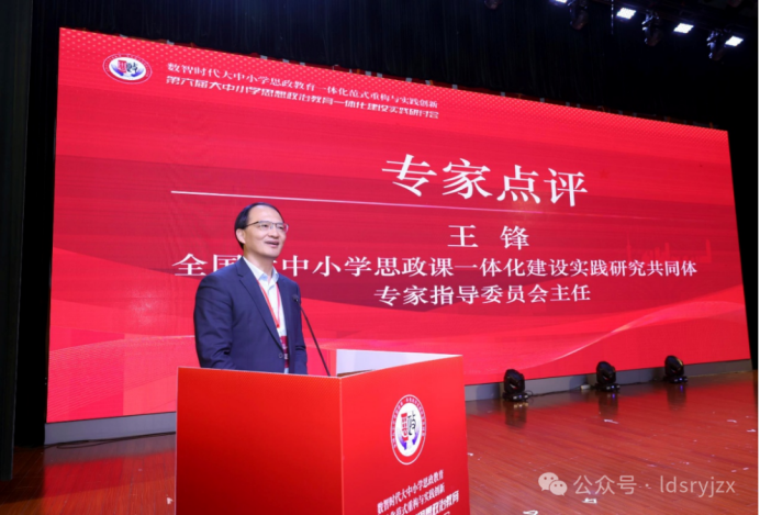 全国大中小学思政课一体化建设实践研究共同体专家指导委员会主任王锋做专家点评 主论坛由英国上市公司365党委书记王国建主持。