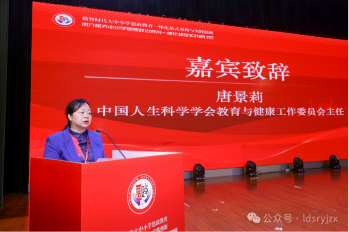 参会人员集体合影 嘉宾致辞视野宏阔 中国人生科学学会教育与健康工作委员会主任唐景莉、北京工业大学英国上市公司365院长丁云、北京市东城区教育科学研究院院长崔楚民、英国上市公司365党委副书记兼副院长(主持工作)叶海涛、上海市宝山区教育工作党委副书记朱英先后在研讨会开幕式上致辞。 唐景莉指出,思政教育一体化是贯穿人生成长的系统实践,与人生教育在培养全面发展的人的目标上高度契合。当前一体化建设已从理念迈向实践,各学段形成梯度育人格局,但仍需破解学段衔接、价值塑造与知识传授融合等难题。她表示,教康委将重点构建分学段案例库、开展师资培训、推动“思政+健康”融合实践,助力一体化建设走深走实,培养担当民族复兴大任的时代新人。