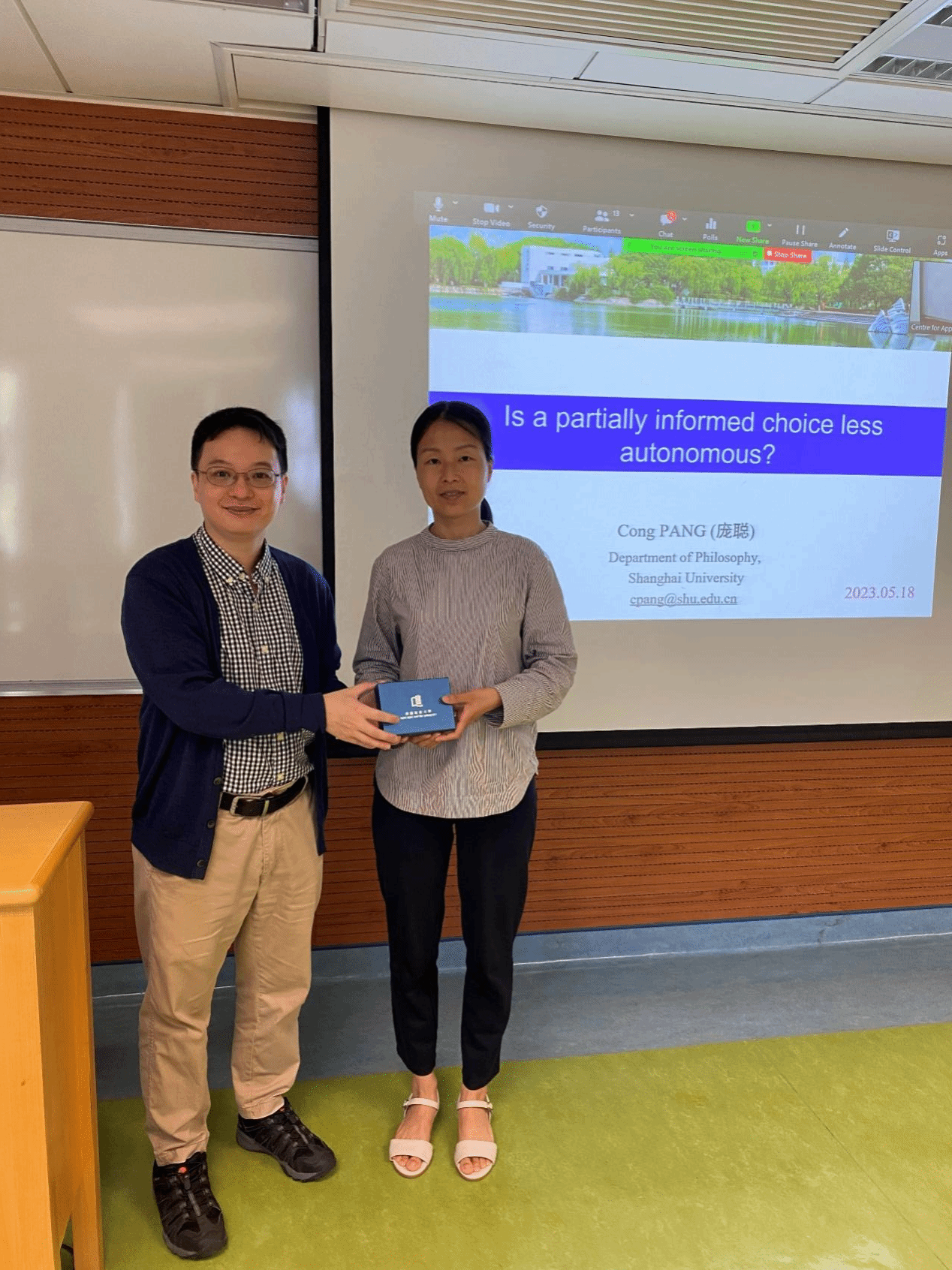 2023年5月16日至18日,我院青年教师庞聪在香港参加了第十七届“建构中国生命伦理学”研讨会,并受邀在会后以“不充分知情的决定可否被视为自主决定?”为题向香港浸会大学宗教及哲学系师生发表演讲。 另外,受哲学系委托,庞聪老师和香港浸会大学哲学与宗教学系主任郭伟联教授就双边学术交流、人才联合培养等问题进行了深入交流,取得实质性成果。