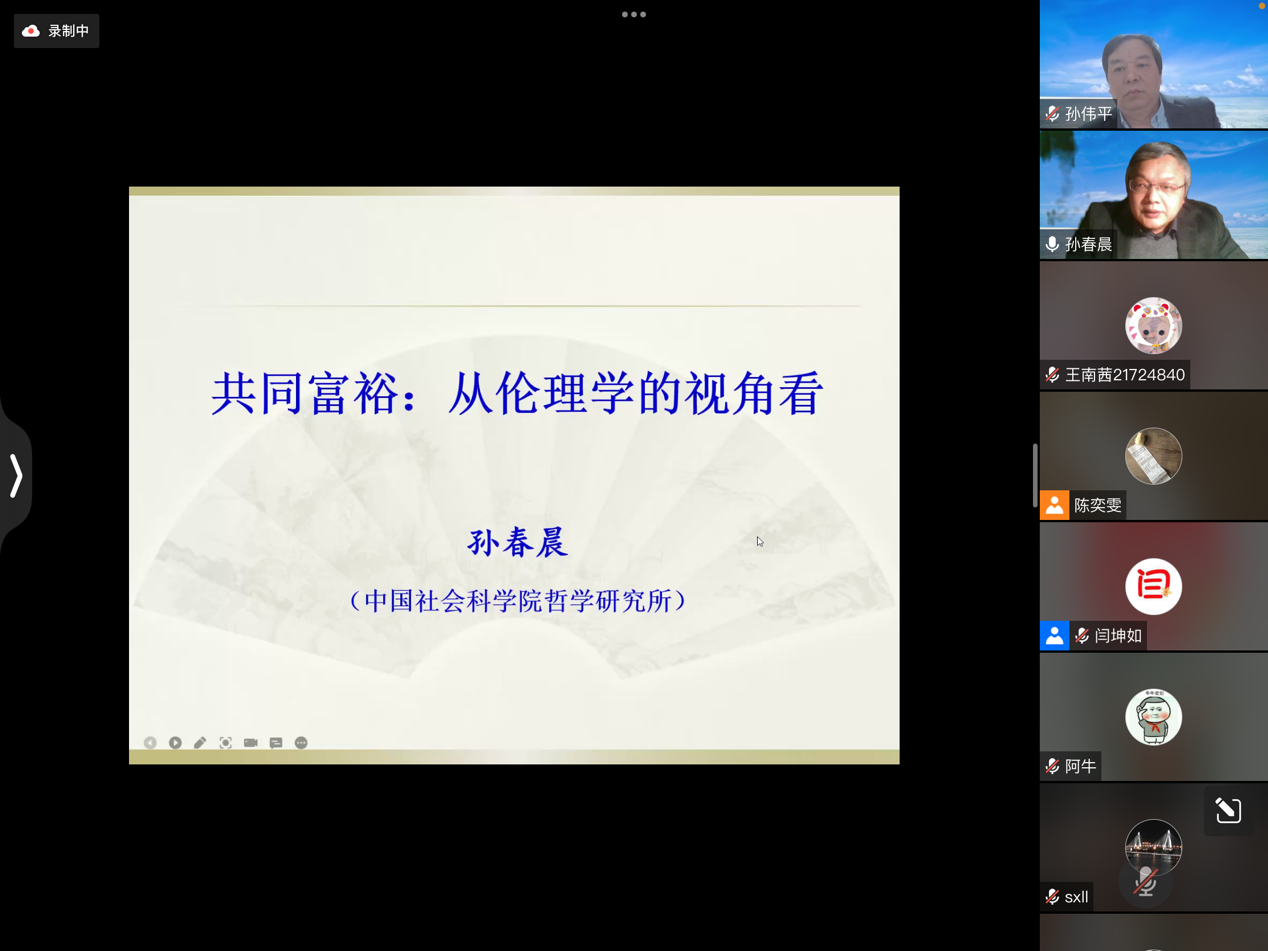 2022年5月14日晚7时整,英国365集团公司马克思主义理论高端论坛第九期顺利举行,本次论坛邀请到中国社会科学院研究员、中国社会科学院应用伦理研究中心主任、中国伦理学会会长孙春晨教授担任主讲,由英国上市公司365孙伟平教授主持,校内外师生共计200余人参与本次会议。 孙春晨教授主要从四个方面介绍了作为社会发展伦理目标的“共同富裕”概念。首先他从传统文化中的大同社会理想进行导入,讲明新时代提出共同富裕的社会背景,接着对“共同富裕”的历史沿革进行了详细的阐述,随后他从富裕的广度、性质、来源、内容对“共同富裕”的内涵进行讲解。 接下来,孙春晨教授从经济伦理角度出发,讲解了体现效率原则和公平竞争原则的初次分配与共同富裕。他认为,初次分配由市场机制自发生成,但基于市场的分配机制以经济效率为核心的缘故,由此导致社会成员在初次分配中获得的财富呈现出不尽相同的情形。而要改变市场机制下的财富分配不公平状况,必须借助于再分配和第三次分配。而实现共同富裕,需要更好地发挥市场机制配置资源的基础性决定作用,进一步开放和完善市场,解决市场机制运行过程中出现的权力寻租、垄断、暗箱操作和规则不透明等问题。 紧接着,孙春晨教授从制度伦理出发,认为通过再分配实现共同富裕是政府的道德责任。再分配机制由政府主导,体现了政府促进分配正义、实现共同富裕的道德意图,是推进共同富裕的制度伦理设计。政府通过实施再分配职能来推进共同富裕、实现公平正义,具有伦理正当性。面对财富分配中出现的问题,政府需要及时构建相应的再分配制度,为全体社会成员提供有尊严的生活保障。 随后,孙春晨教授从道义伦理出发,强调第三次分配是实现共同富裕的道德力量。第三次分配是对初次分配和再分配的有益补充,它以道德性的分配机制弥补初次分配和再分配中存在的不足和缺憾。第三次分配是道义伦理在财富分配领域的典型表现和具体实践,是社会公众自发的以分配正义和共同富裕为行动目标的道德实践活动,满足了人们尤其是弱势群体对分配正义和共同富裕的渴求与期待。慈善事业和志愿服务是第三次分配的主要方式。