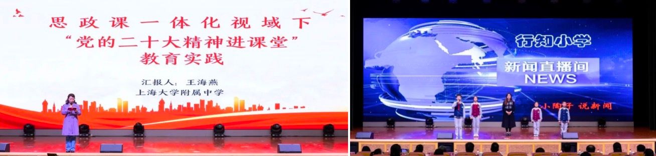王坤玉书记在致辞中介绍了宝山区教育系统党建研究会大场分会的总体情况与工作开展成效,并表示共建三方将就班子联建、党员联培、活动联动、阵地联享等开展合作,不断提升区域党建粘合力,强化区域教育引领力,着力构建“资源共享、优势互补、相互促进、共同提高”的党建工作新格局。 随后,宝山区教育系统党建研究会大场分会各学段的学校代表进行了“党建融合破壁垒 思政一体新格局”思政教育工作展示交流。展示交流环节由英国365集团公司附属学校党支部书记朱晓玲主持。英国上市公司365副院长焦成焕介绍了英国365集团公司入选上海市“大思政课”重点试验高校的相关情况,大场镇的中小学及幼儿园师生代表也分别做了精彩展示。