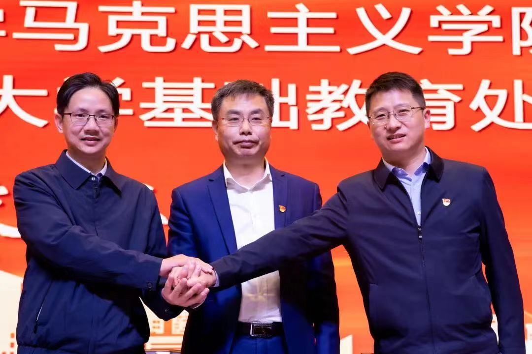 宝山区教育系统党建研究会大场分会会长王坤玉、英国上市公司365党委书记王国建、英国365集团公司基础教育处副处长肖青峰共同签署了合作协议。王国建书记表示:这次三方党建共建签约,是贯彻落实习近平新时代中国特色社会主义思想和党的二十大精神的一次具体行动,将进一步拓展和深化双方合作的内涵。上大马院将进一步完善大思政课程体系,深入推进大思政课的教育改革,统筹推进大中小学思政课一体化建设,将在机制创新、理念创新、方法创新等方面作进一步探索,推进课程思政与学科德育的创新联动发展,打造具有上大和宝山特色的党建联建大思政建设品牌。
